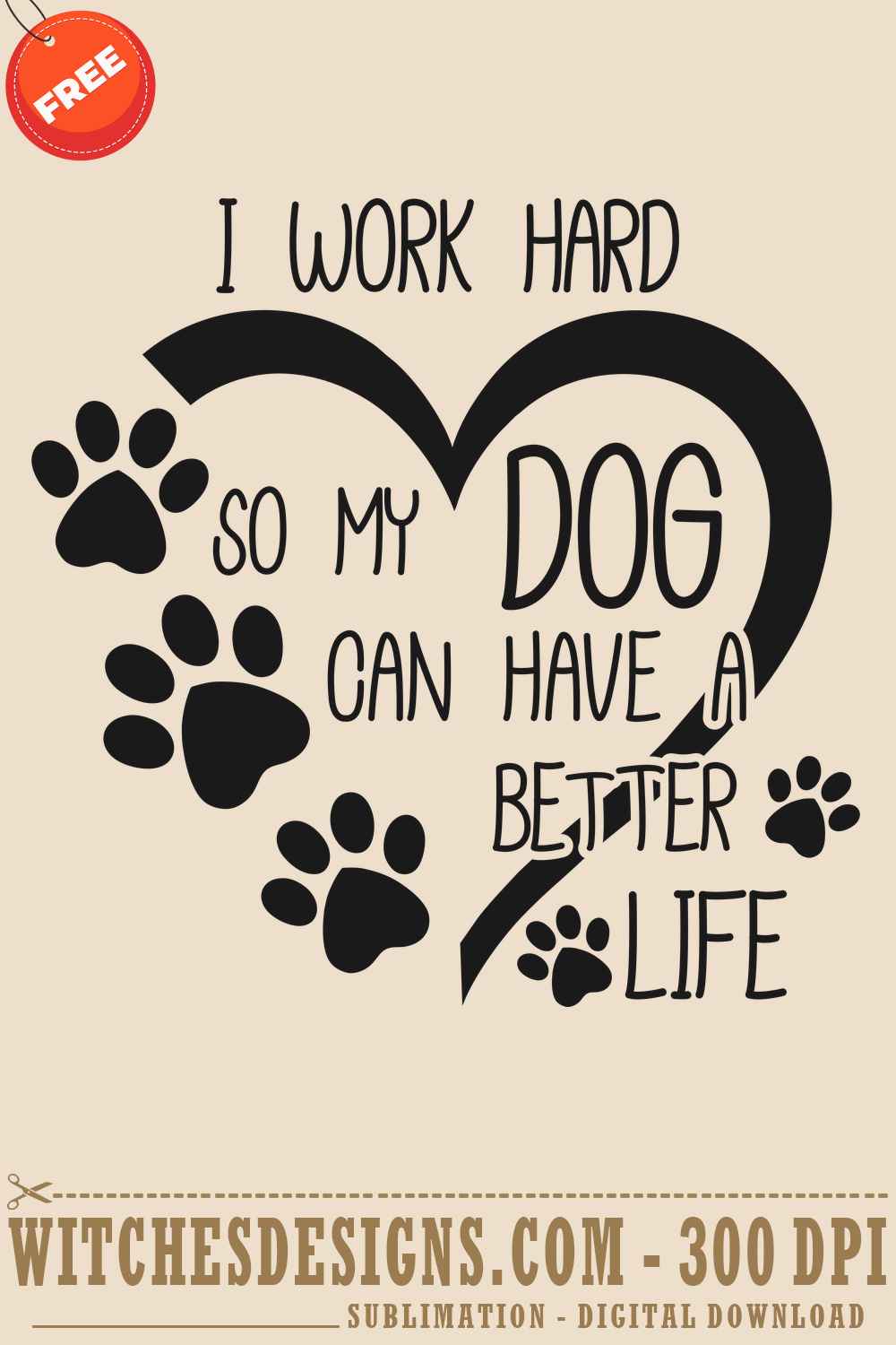 Unlock unlimited creativity with our free ‘I Work Hard So My Dog Can Have A Better Life’ SVG design. Perfectly crafted for dog lovers and crafters alike, this SVG file offers immediate, no-cost accessibility for anyone looking to add a personal touch to their projects.