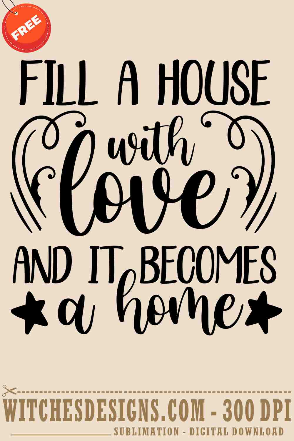 Get your hands on the ‘Fill A House With Love And It Becomes A Home’ free SVG design today! Instantly accessible and 100% free, ready to elevate your creative projects.