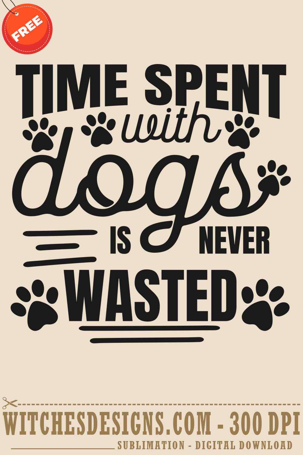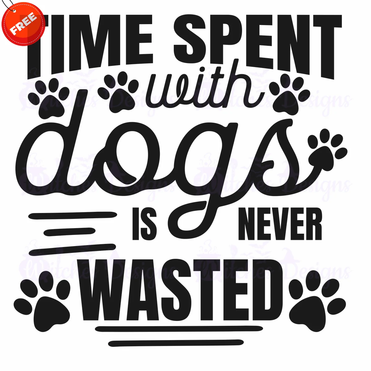 Download your free ‘Time Spent With Dogs Is Never Wasted’ SVG design instantly! This high-quality vector graphic is perfect for dog lovers and craft enthusiasts.